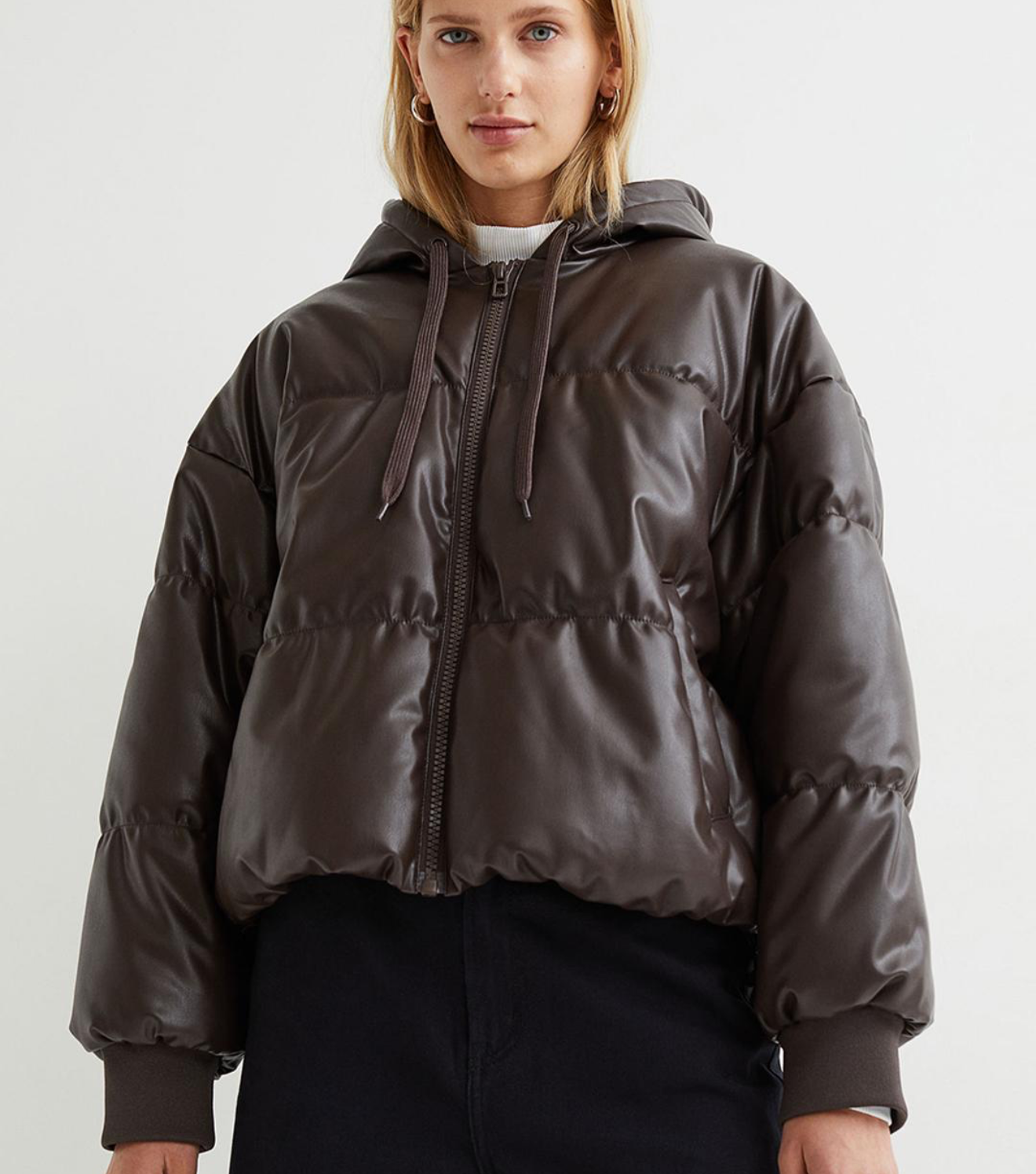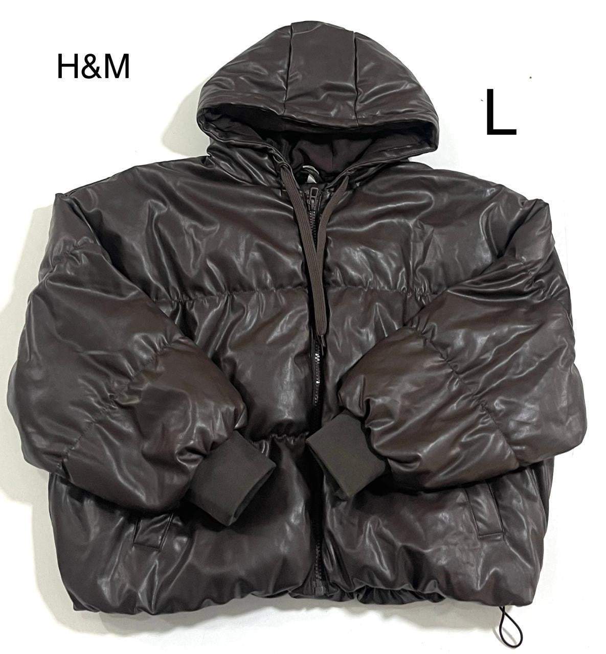 une doudoune de la marque  H&M à capuche marron foncé .